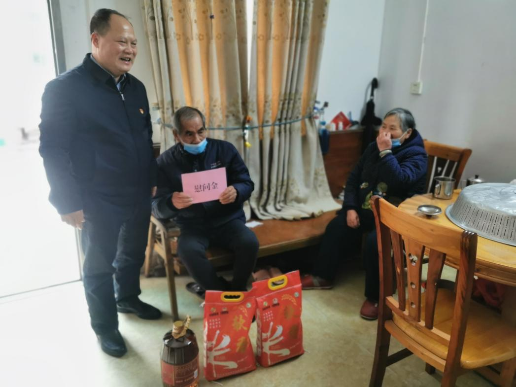 1月16日,在新春佳節(jié)到來之際,市濱海投資集團公司黨委書記、董事長盧長任帶領班子領導到文昌社區(qū)開展春節(jié)前走訪慰問生活困難黨員、老黨員、老干部主題黨日活動。 在文昌社區(qū)干部陪同下,集團公司黨委領導分別上門走訪慰問部分退休生活困難黨員、老黨員、老干部代表,讓他們切實感受到黨和政府的關懷與溫暖,并向他們致以節(jié)日的問候和美好的祝愿,并送上大米、食用油、慰問金,與他們促膝談心,親切詢問家庭、生活、健康狀況,詳細了解他們的困難和需求。同時,感謝他們曾經的辛苦付出和對黨組織工作的大力支持,希望他們珍惜光榮歷史,不忘革命初心,永葆政治本色,繼續(xù)做全面從嚴治黨的堅定支持者和模范踐行者;并叮囑他們多保重身體,做好疫情防控,確保安全、健康、和諧過新年。