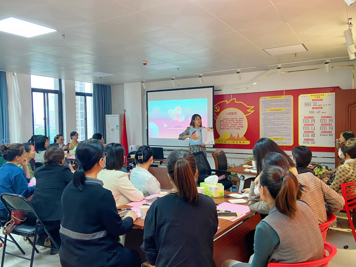(圖為講師在給女職工分享繪本《讓我安靜五分鐘》,帶領(lǐng)大家進入奇妙的繪本世界)