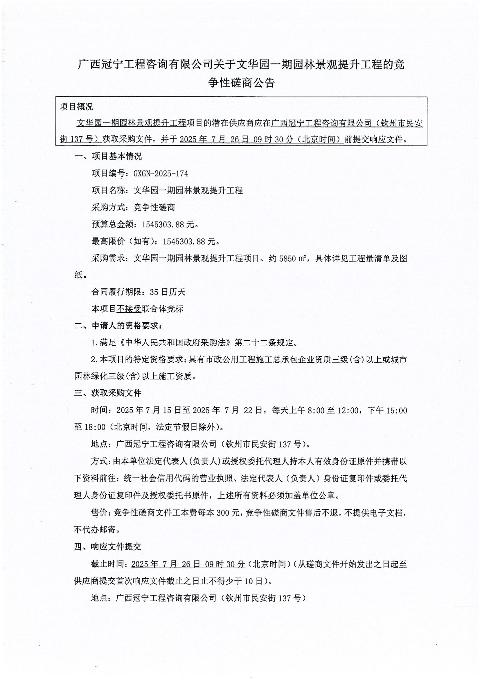 文華園一期園林景觀提升工程的競爭性磋商公告