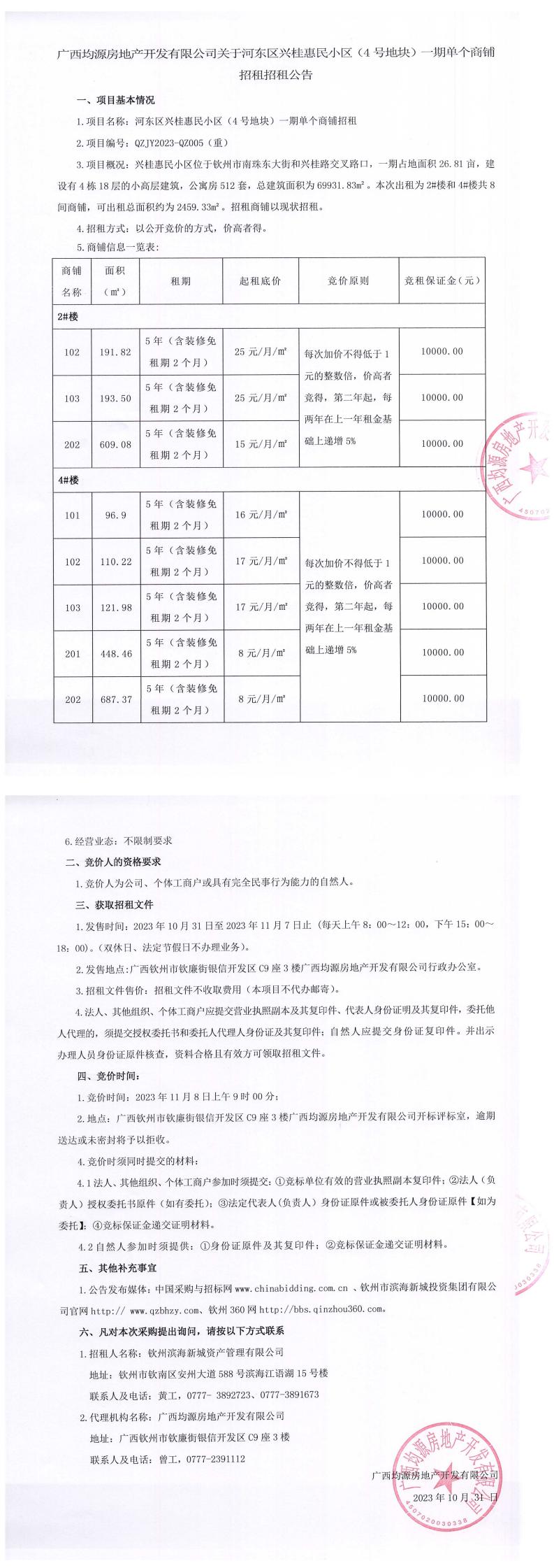 欽州市廉租房家興苑六區(qū)、七區(qū)商鋪招租公告
