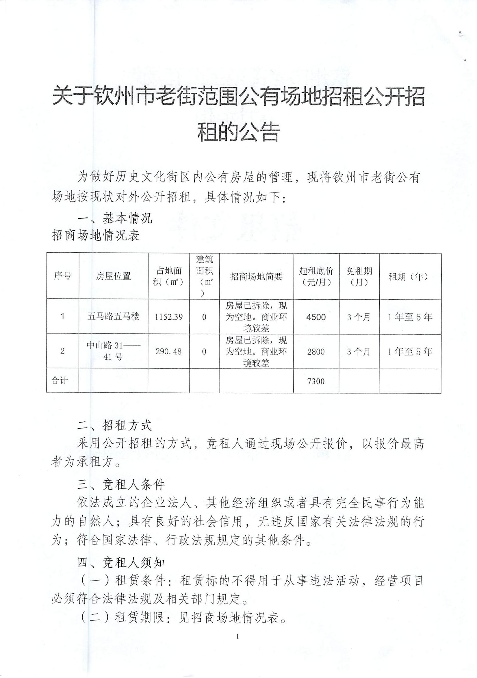 欽州市濱海文化旅游投資有限公司關于欽州市老街范圍11處房屋(場地)公開招租結果公示