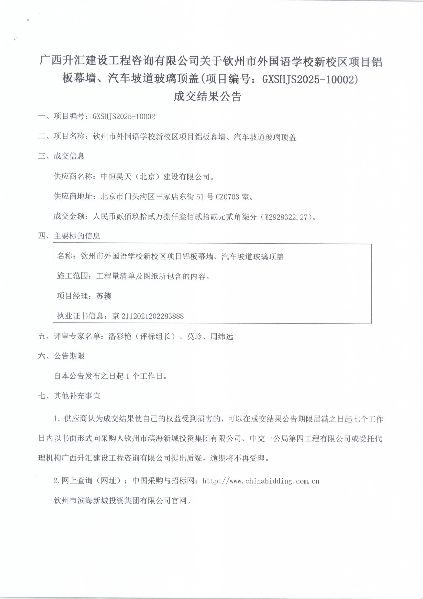 成交結(jié)果公告