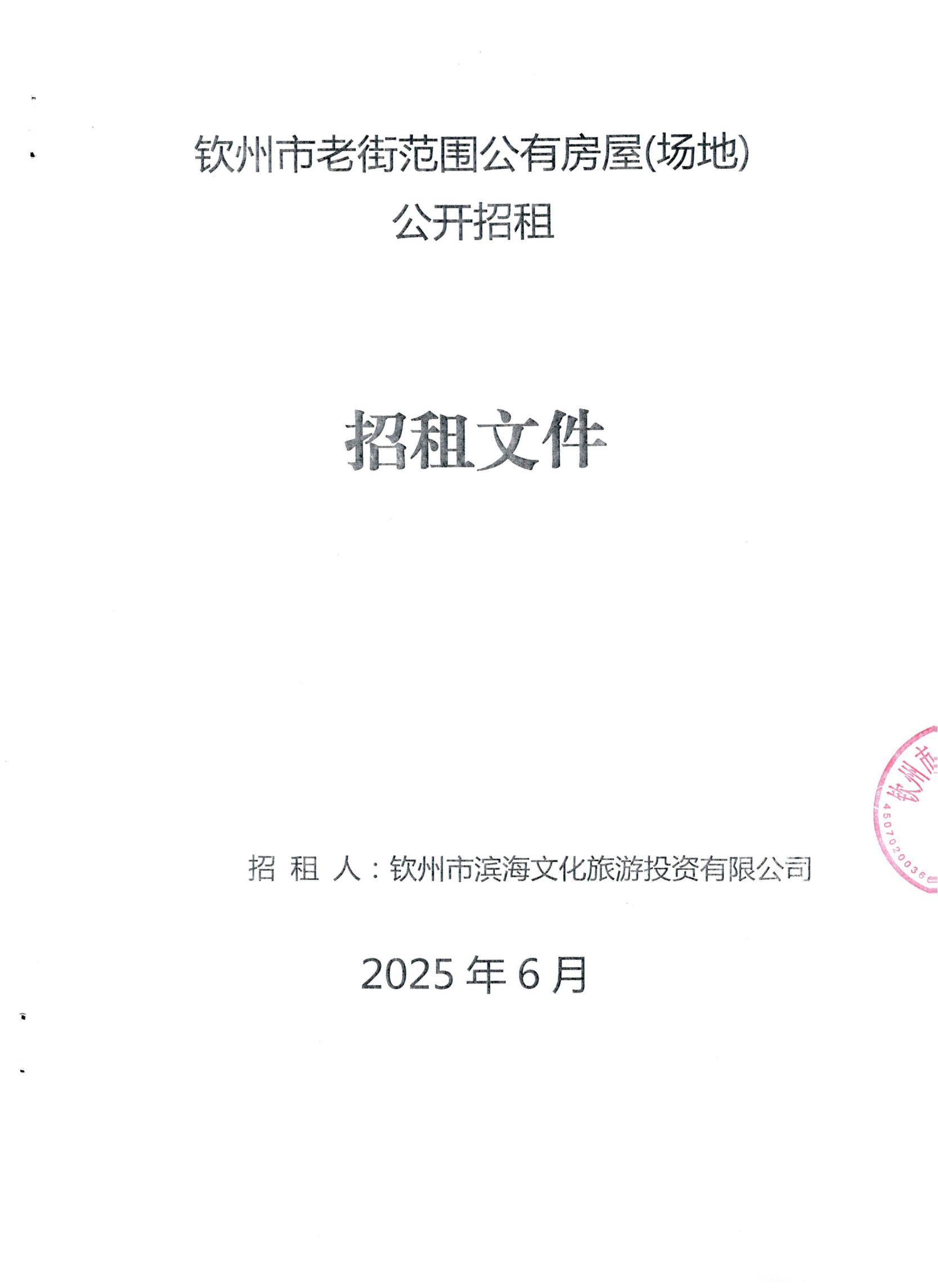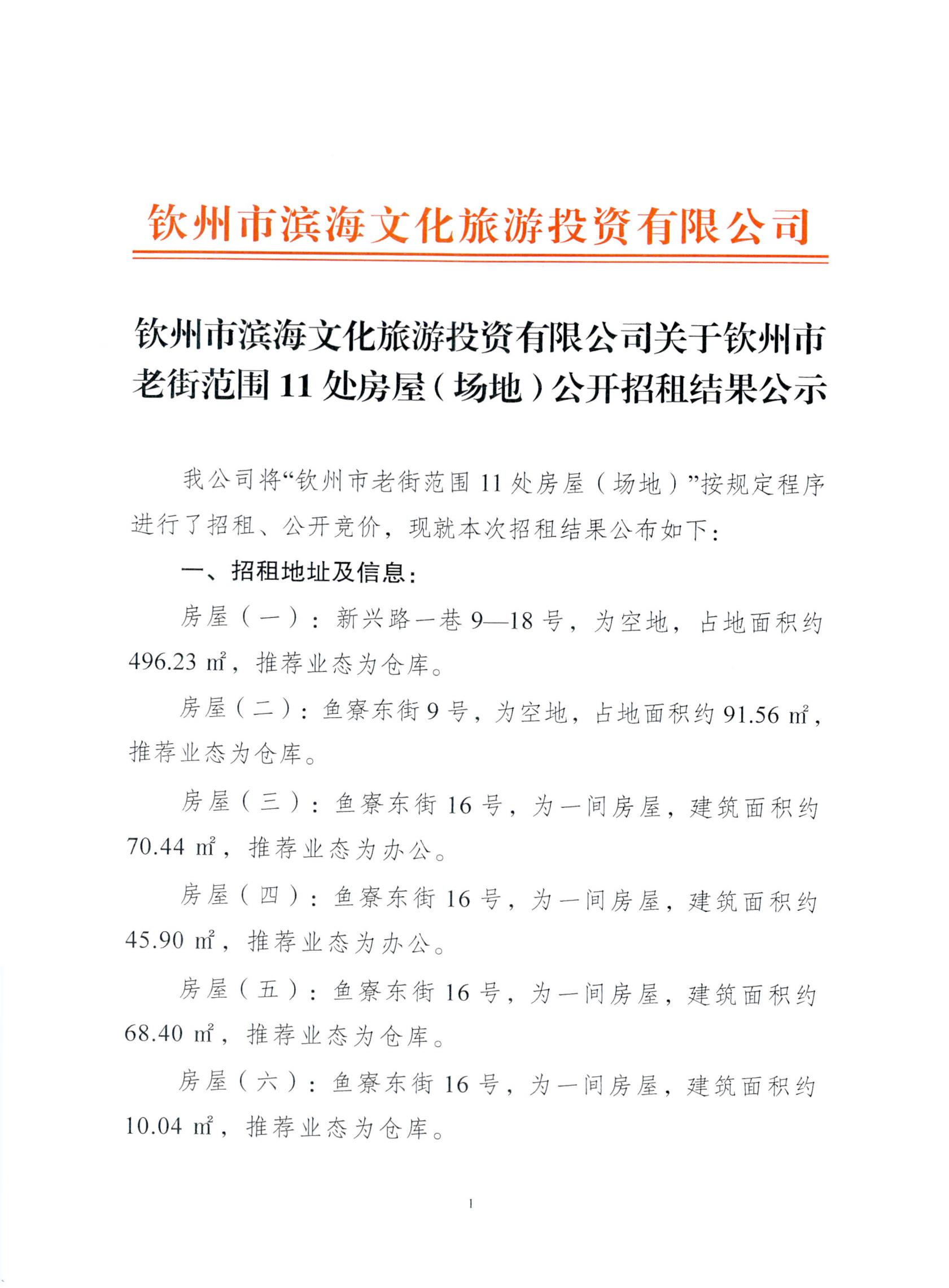 欽州市濱海文化旅游投資有限公司關(guān)于欽州市老街范圍11處房屋(場地)公開...