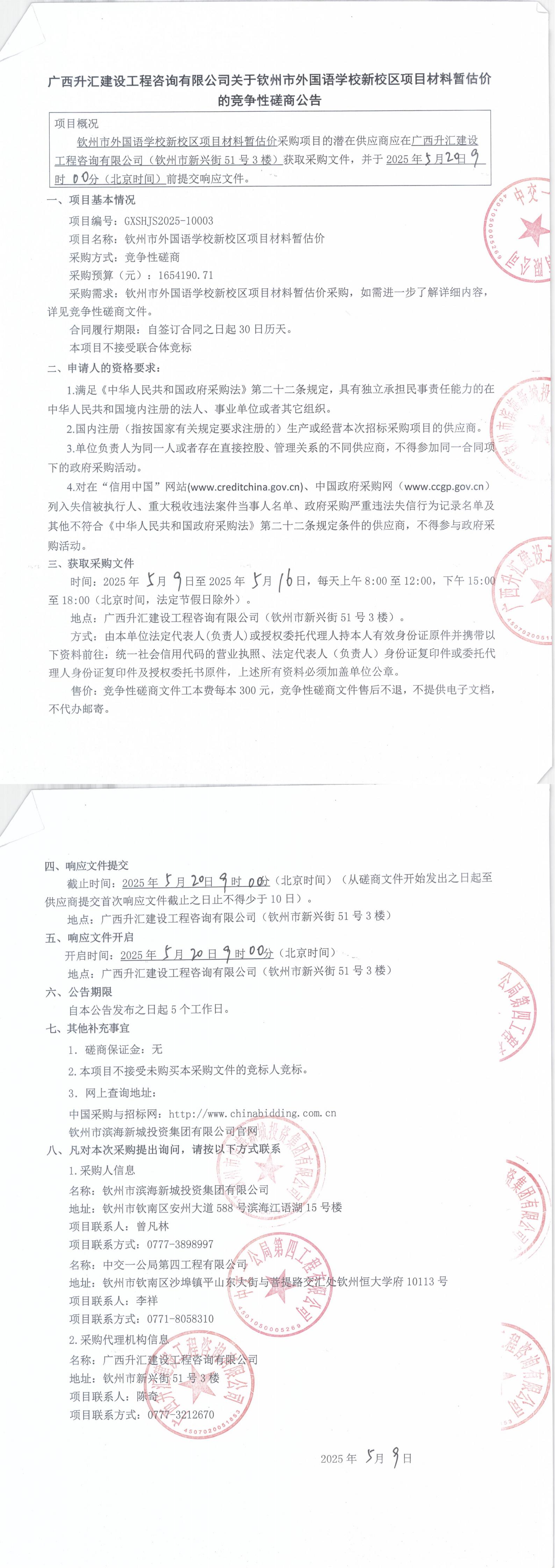 關(guān)于欽州市外國(guó)語學(xué)校新校區(qū)項(xiàng)目材料暫估價(jià)的競(jìng)爭(zhēng)性磋商公告