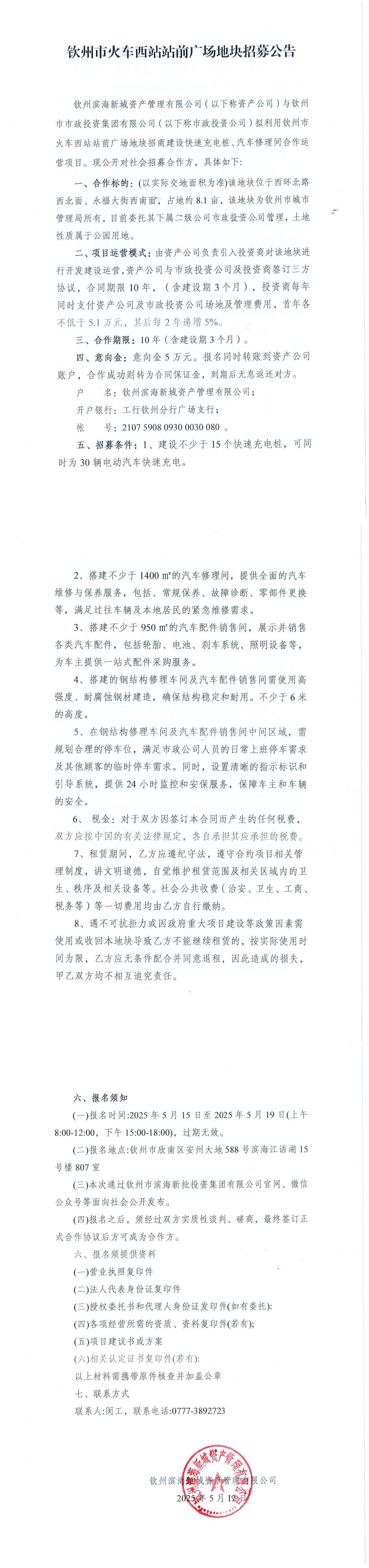 欽州市火車西站站前廣場(chǎng)地塊盤活招募公告