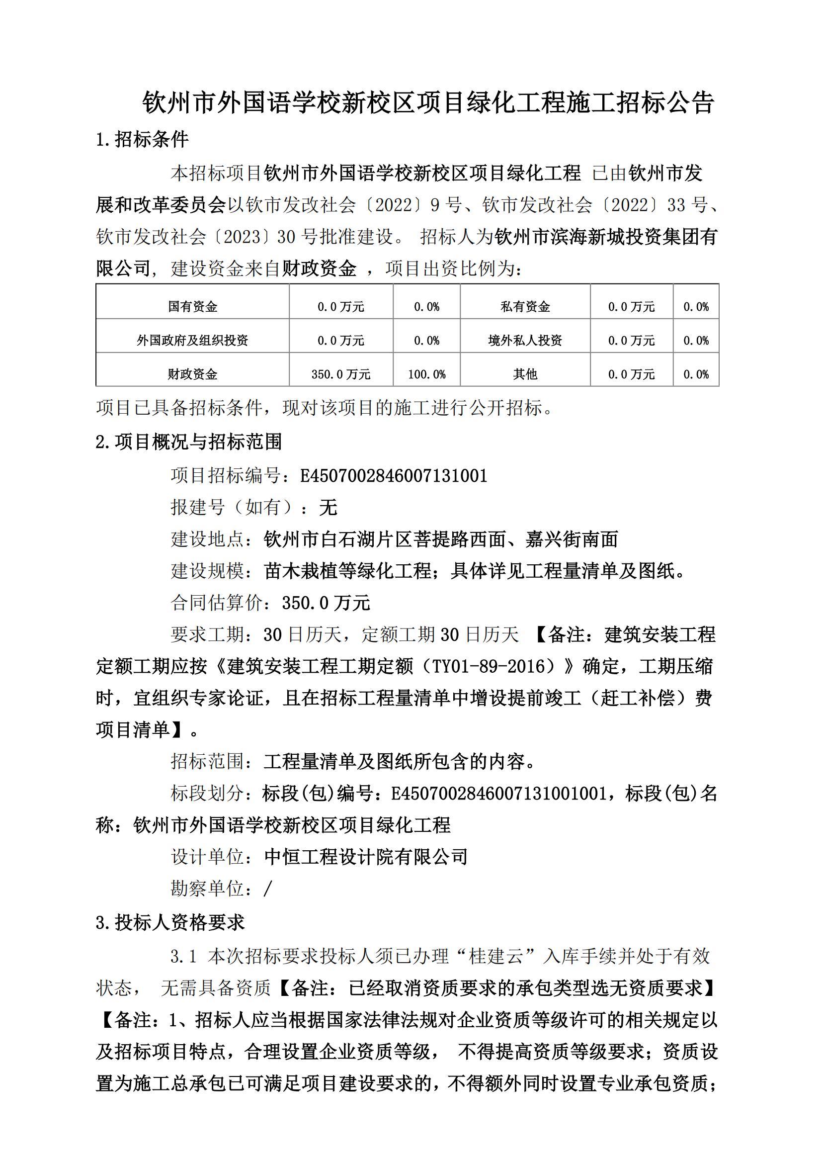 欽州市外國(guó)語學(xué)校新校區(qū)項(xiàng)目綠化工程施工招標(biāo)公告