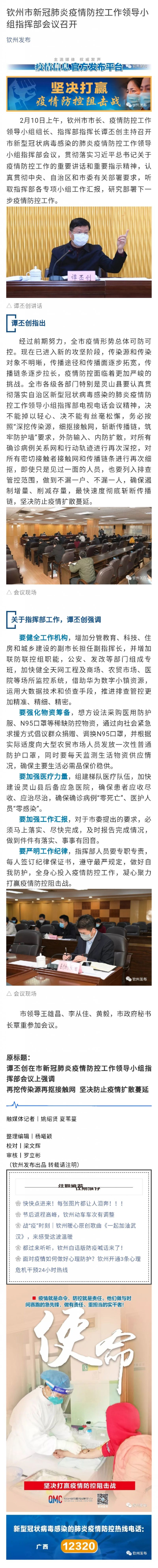 欽州市新冠肺炎疫情防控工作領(lǐng)導(dǎo)小組指揮部會(huì)議召開(kāi)