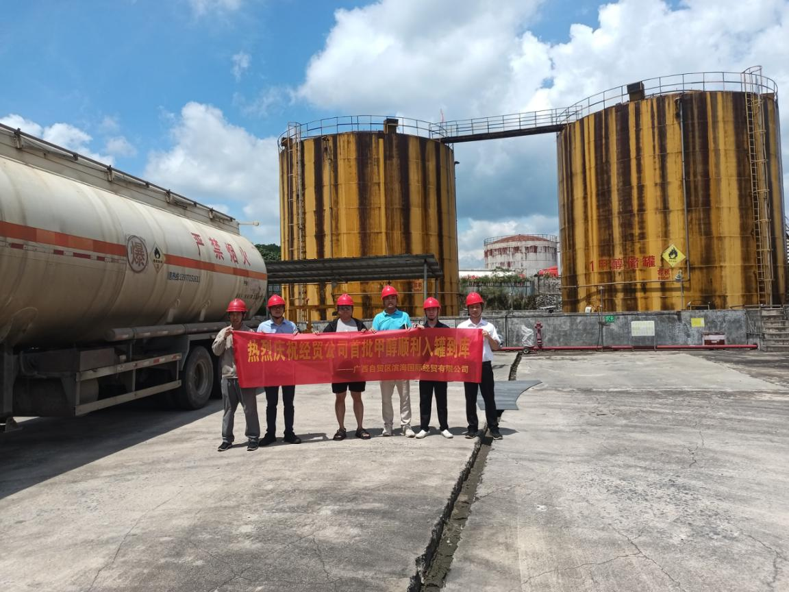 廣西自貿(mào)區(qū)濱海國(guó)際經(jīng)貿(mào)有限公司與上海華誼集團(tuán)廣西工廠合作開展的首批甲醇貿(mào)易于2024年6月20日順利入罐到庫(kù)。