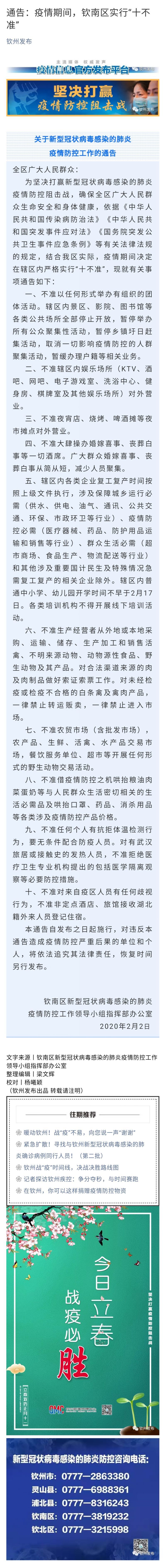 通告:疫情期間,欽南區(qū)實行“十不準”