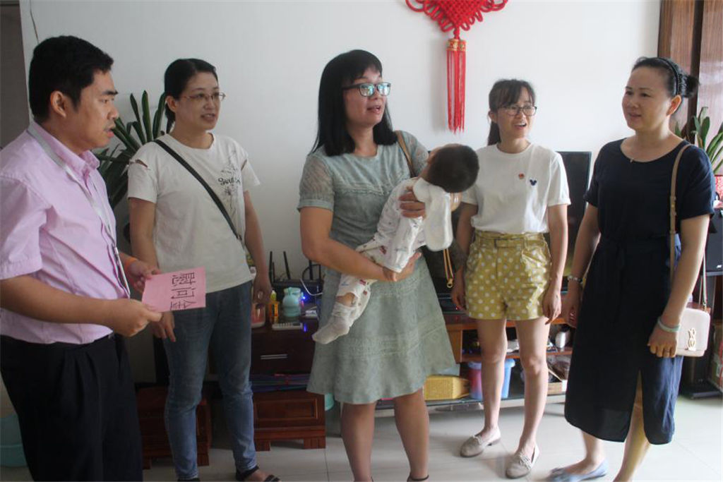 (圖為慰問小組來到職工家中看望患病兒童)