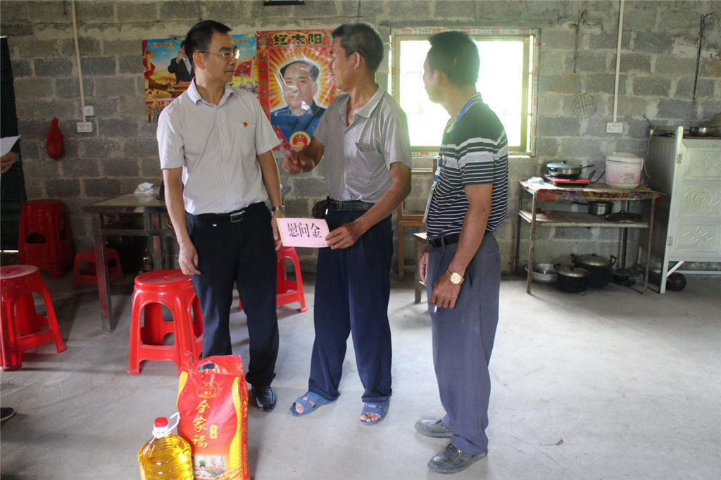 為紀(jì)念建黨97周年,弘揚(yáng)黨的光榮傳統(tǒng)和優(yōu)良作風(fēng),充分體現(xiàn)黨組織對基層黨員的關(guān)懷和愛護(hù),6月28日上午,集團(tuán)公司黨委副書記覃世金率部分黨員干部來到幫扶村—靈山縣伯勞鎮(zhèn)新禾村,開展集團(tuán)公司“七一”慰問生活困難黨員、老黨員和村干部活動,為他們送去慰問金和慰問品,同時(shí)也對集團(tuán)公司幫扶的貧困戶進(jìn)行了入戶走訪。 在慰問活動中,每到一戶慰問對象家中,集團(tuán)公司領(lǐng)導(dǎo)干部都和老黨員親切交談,傾聽老黨員暢談革命往事,詳細(xì)了解他們的身體狀況和生產(chǎn)情況,幫助他們解決生活中的難題,征求意見和建議,使他們精神上得到更多的鼓勵,切身感受到黨組織的關(guān)懷。慰問中,集團(tuán)公司領(lǐng)導(dǎo)干部對老黨員多年來為黨的事業(yè)作出的貢獻(xiàn)表示感謝,并鼓勵他們要保持堅(jiān)定不移的信念,樹立戰(zhàn)勝困難的信心,繼續(xù)發(fā)揮余熱,為新禾村的發(fā)展積極建言獻(xiàn)策。接受慰問的老黨員們都十分感謝集團(tuán)公司領(lǐng)導(dǎo)在百忙之中抽空前來看望和慰問,這讓他們倍感黨的關(guān)懷和愛護(hù),并表示將一如既往地為村里各項(xiàng)工作獻(xiàn)出自己力所能及的力量。 ![]()
