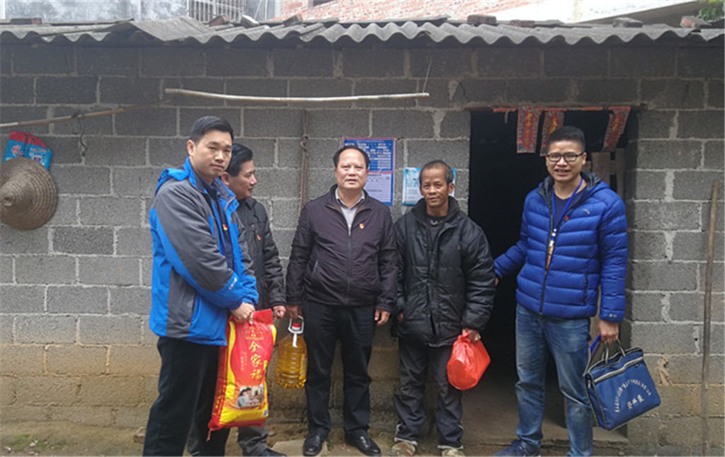 春節(jié)來臨之際,為讓困難黨員、貧困戶、村干部和駐村工作隊(duì)員渡過一個(gè)歡樂祥和的春節(jié),集團(tuán)公司副總經(jīng)理?xiàng)钚聴澛暑I(lǐng)黨員干部冒著嚴(yán)寒,帶著濃濃暖意前往幫扶聯(lián)系點(diǎn)靈山縣伯勞鎮(zhèn)新禾村開展春節(jié)慰問活動(dòng),送上集團(tuán)公司的關(guān)懷問候和新春祝福。