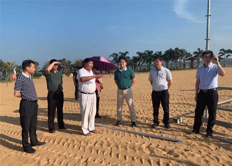 2019年10月9日下午4點(diǎn),潘定喜副秘書長到我集團(tuán)公司檢查沙灘排球賽項(xiàng)目現(xiàn)場籌備工作。我集團(tuán)公司副總經(jīng)理余業(yè)勝及相關(guān)現(xiàn)場人員到現(xiàn)場迎接檢查。我集團(tuán)公司副總經(jīng)理余業(yè)勝對我集團(tuán)公司開展關(guān)于沙排賽場地建設(shè)的情況做相關(guān)的工作匯報。潘定喜副秘書長聽取匯報后,他首先對我集團(tuán)公司近期在建設(shè)沙排賽場地方面所作出的工作表示肯定,其次他要求各個相關(guān)部門要通力配合,做好沙排賽場地建設(shè)、宣傳、安全保衛(wèi)、醫(yī)療衛(wèi)生、交通保障的工作。