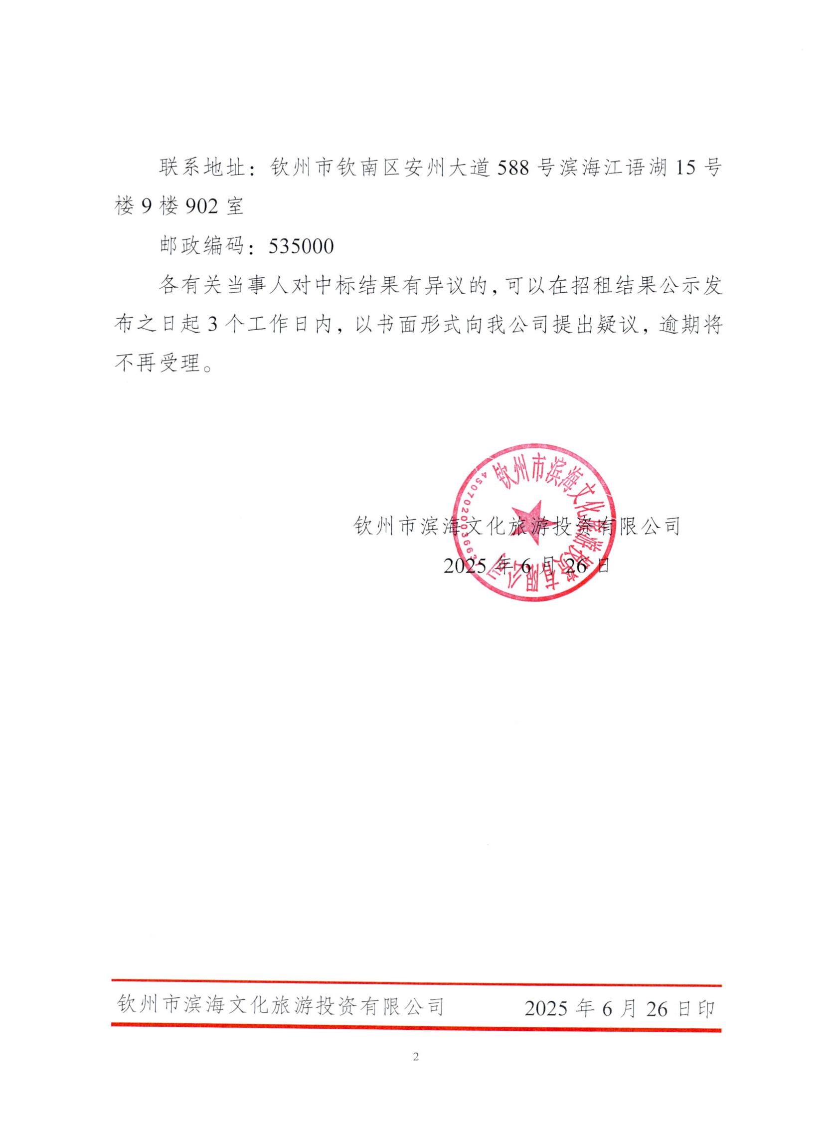欽州市濱海文化旅游投資有限公司關(guān)于欽州市老街范圍二馬路43號房屋公開招租結(jié)果公示