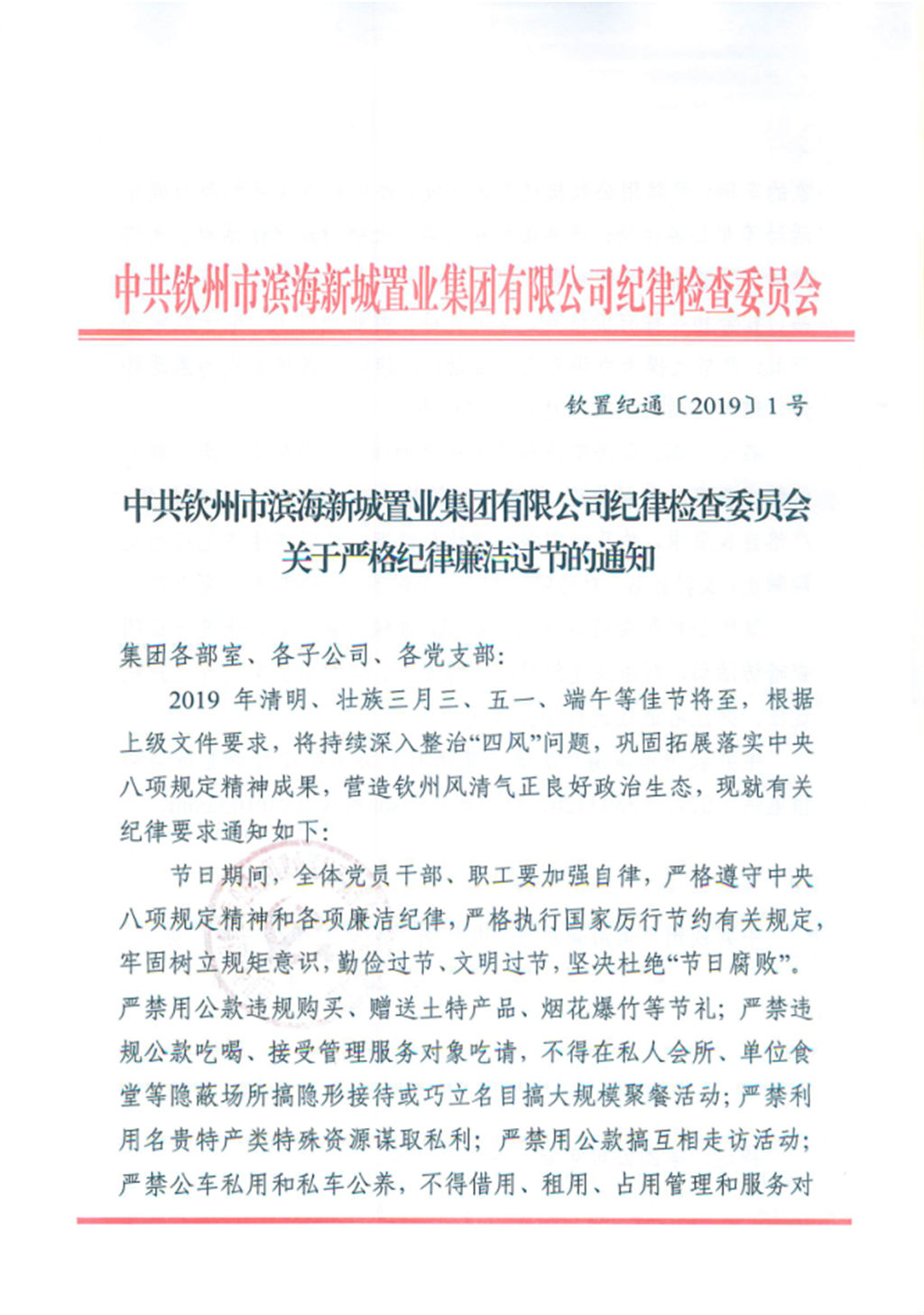 集團公司紀委印發(fā)了《關(guān)于嚴格紀律廉潔過節(jié)的通知》