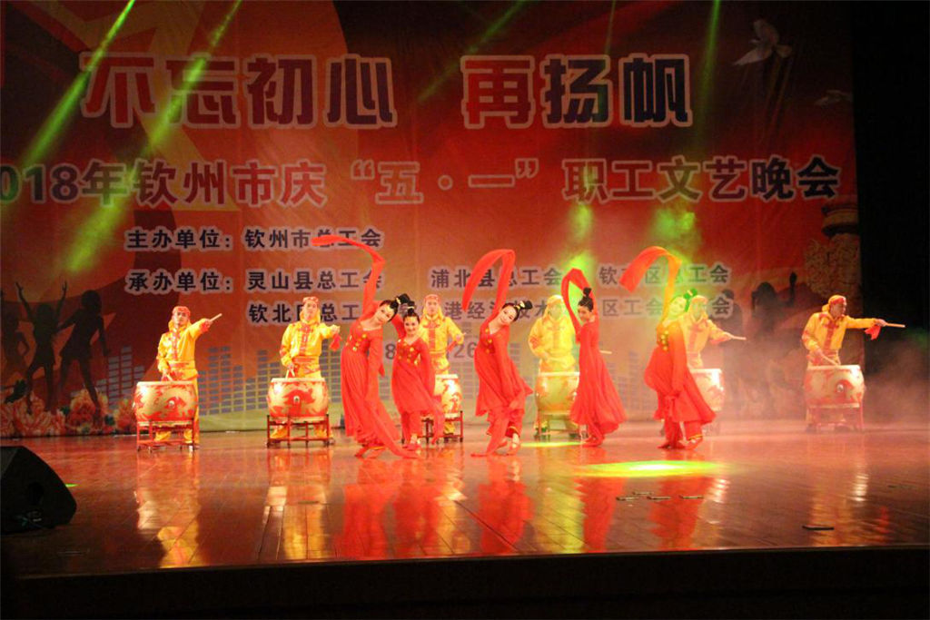 4月26日,市總工會在市文化藝術(shù)中心舉行“不忘初心,再揚(yáng)帆”2018年欽州市慶“五一”職工文藝晚會,我集團(tuán)公司選送節(jié)目《鼓動開篇》,雄壯的鼓聲和優(yōu)美的舞姿,贏得現(xiàn)場觀眾陣陣掌聲。